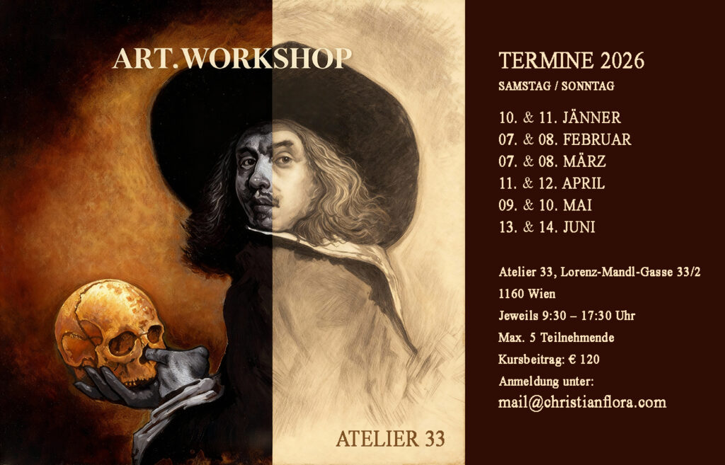 Ziel ist es, die Grundlagen klassischer Techniken zu erlernen – mit modernen Mitteln, die die Qualität der Alten Meister bewahren und gleichzeitig den Malprozess beschleunigen.